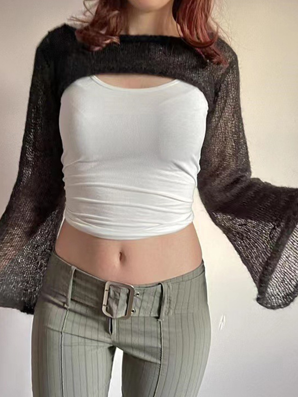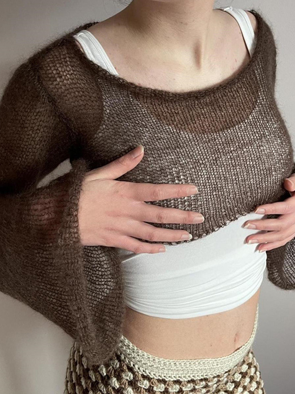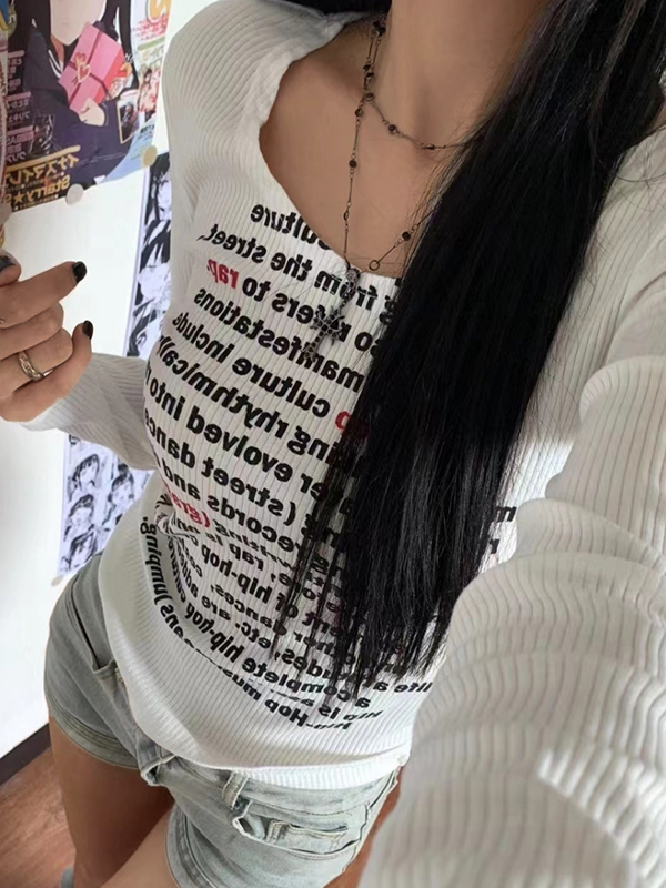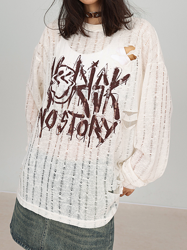 Einfarbige Strickwaren mit einer Schulter und Buchstaben und langen Ärmeln