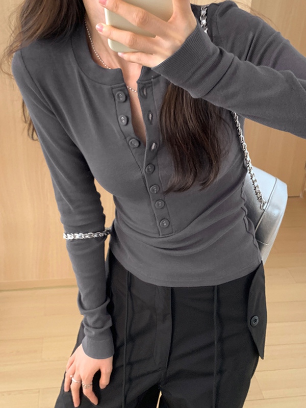 V-Ausschnitt Button-Down Freizeithemd Langarm