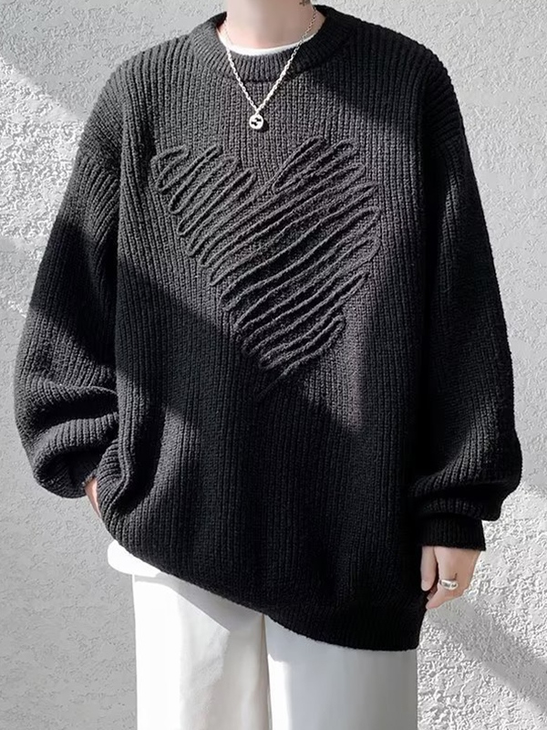 Herrenpullover mit dreidimensionalem Herzdekor und Rundhalsausschnitt