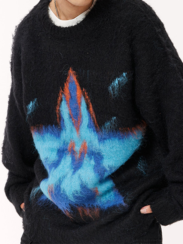 Herren-Rundhalspullover aus Jacquard mit Star-Graffiti-Motiv