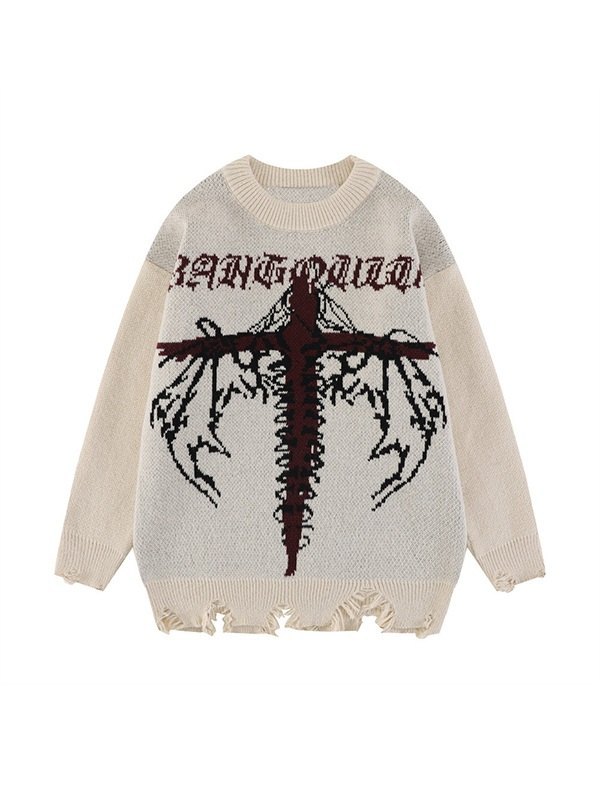 Distressed-Pullover mit Kreuz-Jacquard für Herren
