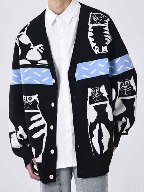 Herren-Pullover mit V-Ausschnitt und Cartoon-Print