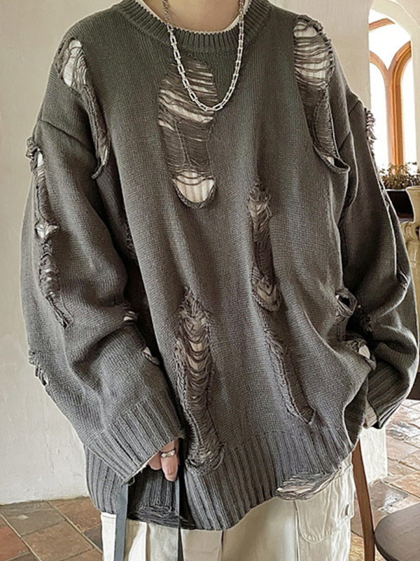 Herrenpullover mit ausgefranstem Stern-Tattered-Design