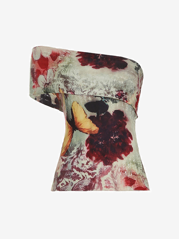 One-Shoulder-Tanktop mit Vintage-Print