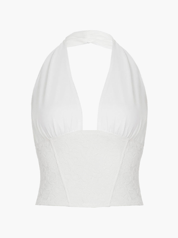 Neckholder-Weste mit Patchwork-Spitze im französischen Stil