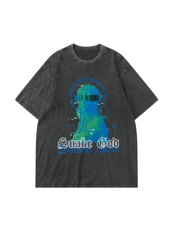 Kurzarm-T-Shirt mit One-Shoulder-Schlangenmuster