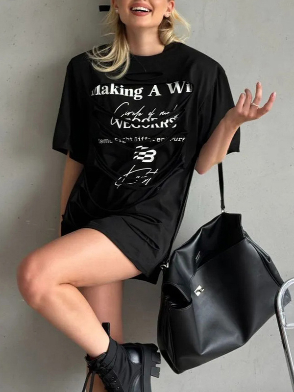 Oversize-Kurzarm-T-Shirt mit Street-Digitaldruck