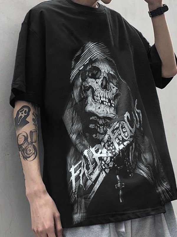 Kurzärmliges Vintage-T-Shirt mit Totenkopf-Grafik für Herren