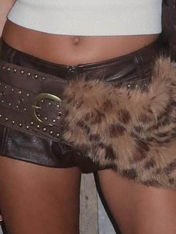 Vintage-Gürtel mit Pelznieten und Leopardenmuster