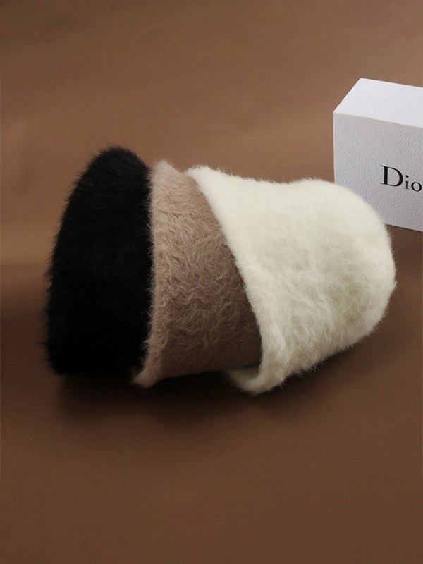 Einfarbiger, warmer, flauschiger Fischerhut