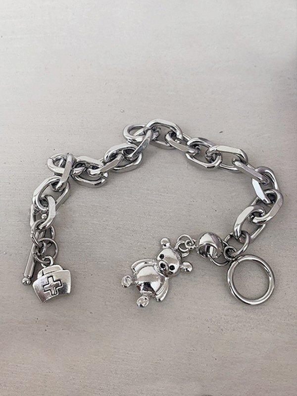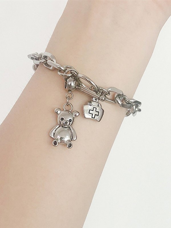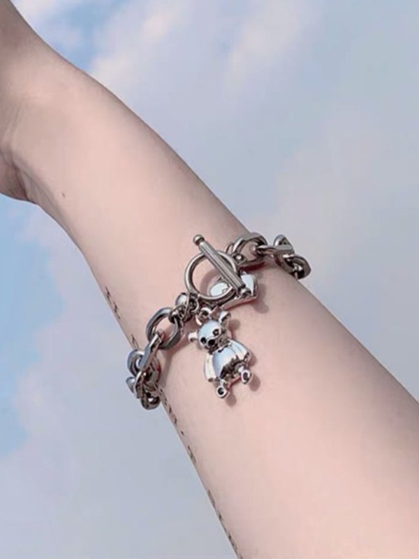 Knebel-Armband mit Bärenanhänger und klobiger Kette