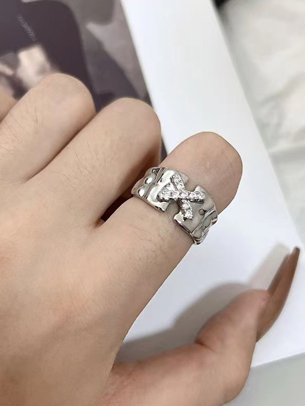 3-teiliges Manschettenring-Set mit glitzernden eingebetteten Diamanten