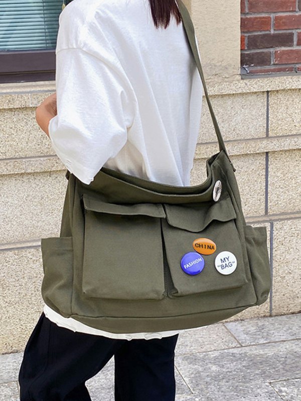 Details: Verfügt über einen verstellbaren Schultergurt mit mehreren Abzeichenanhängern, Innentaschen und Reißverschlussdesign.