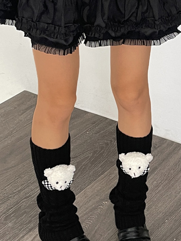 Gestrickter Beinwärmer mit Bärendekor im Twist-Design