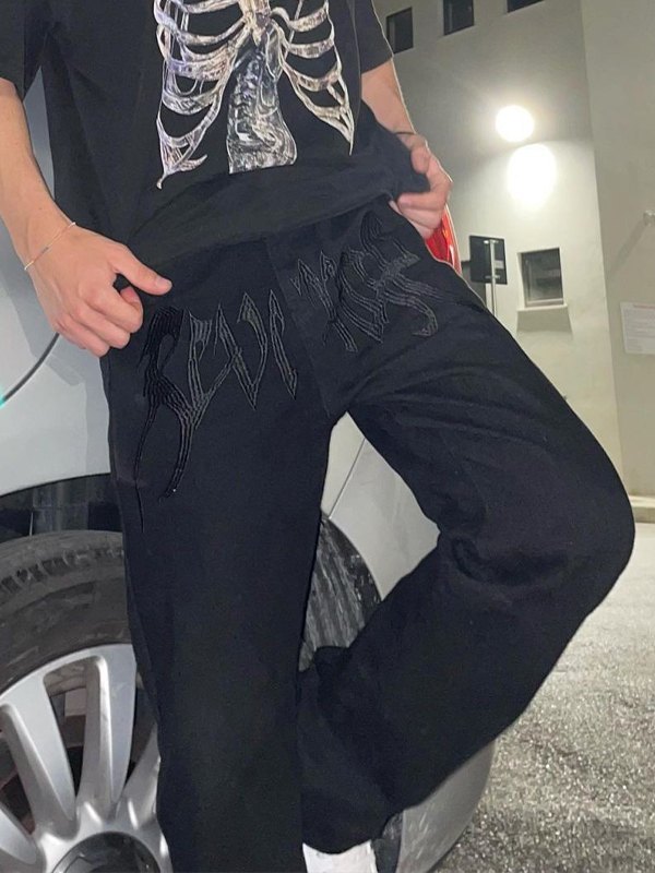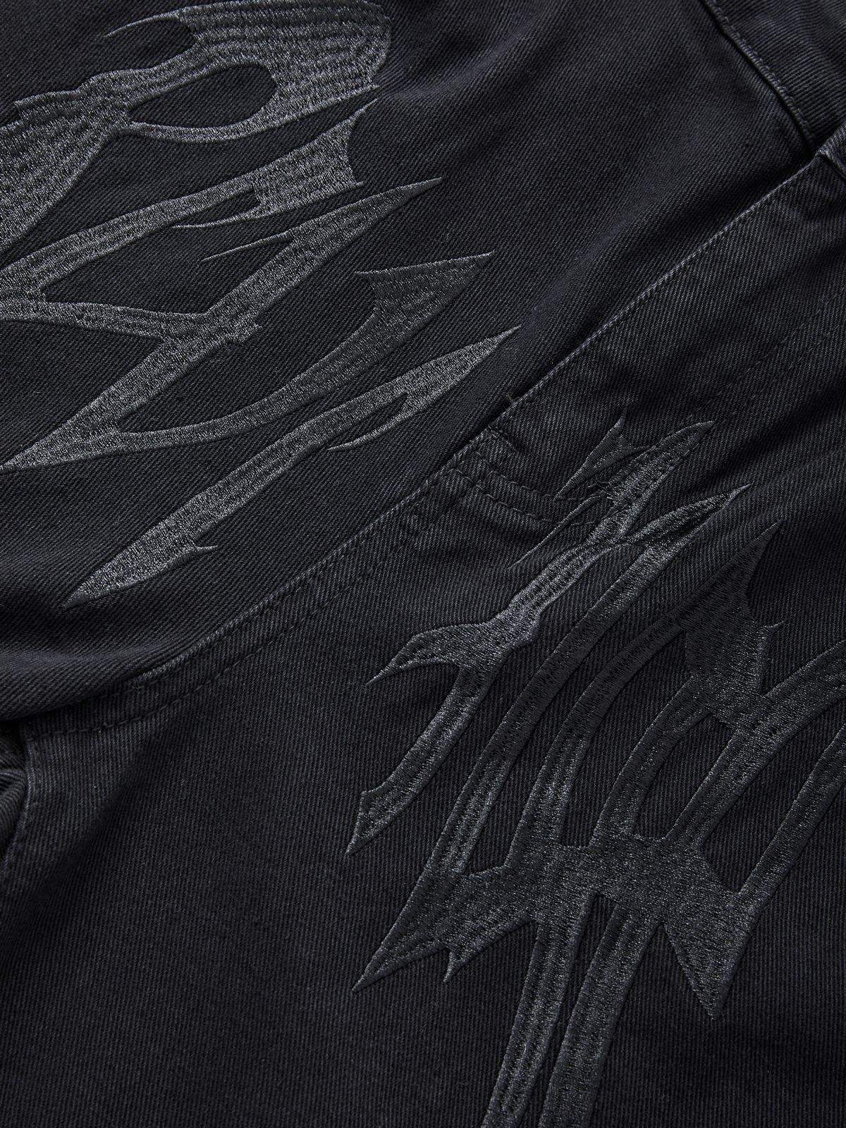 Design: Diese schwarz gewaschene Jeansform mit geradem Bein, mit Buchstabenmuster auf der Vorderseite, 5 klassischen Taschen und Reiß- und Knopfverschluss.