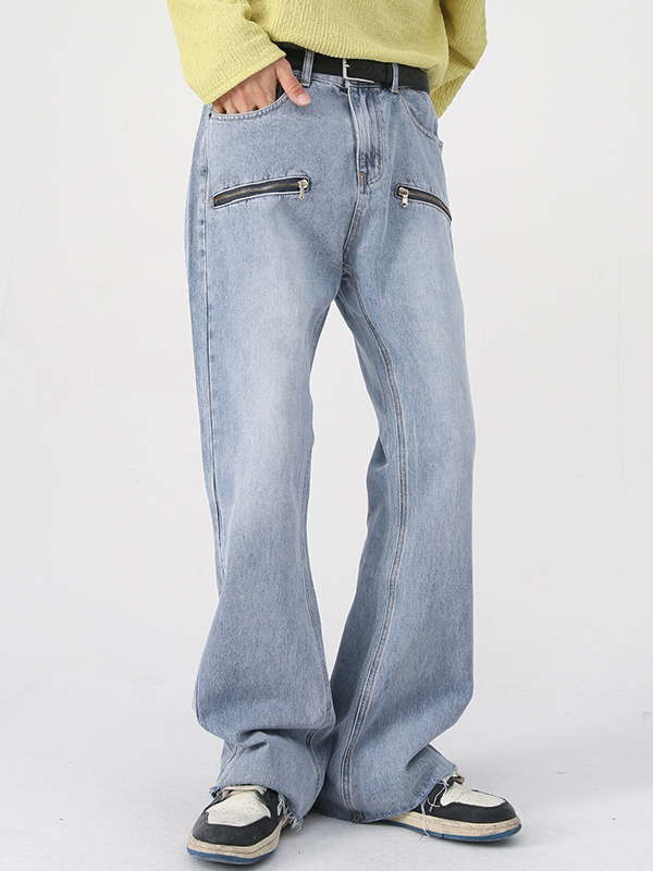 Herrenjeans mit verwaschenem und gealtertem Micro-Reißverschluss