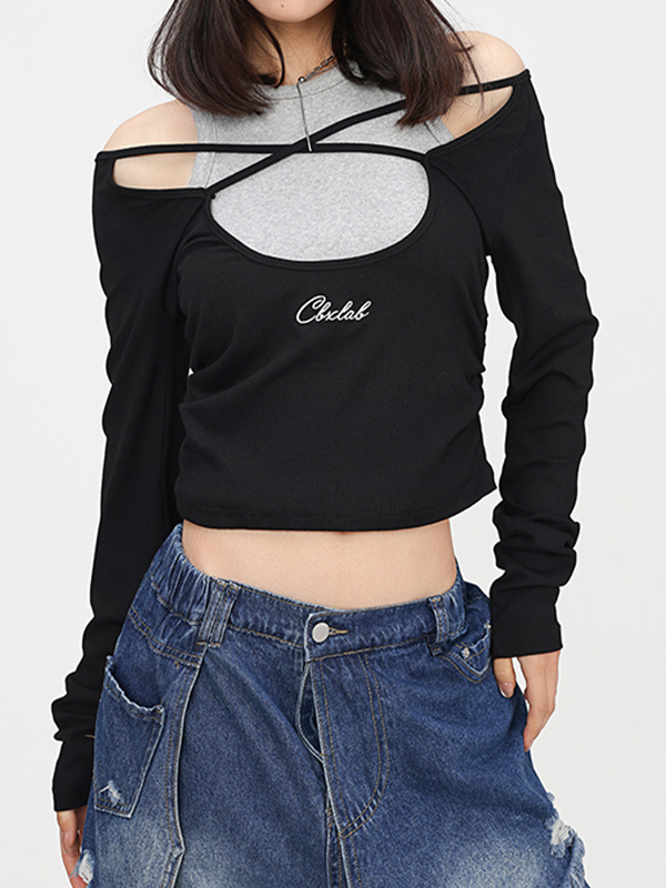Langärmliges T-Shirt mit Trägern und rückenfreiem