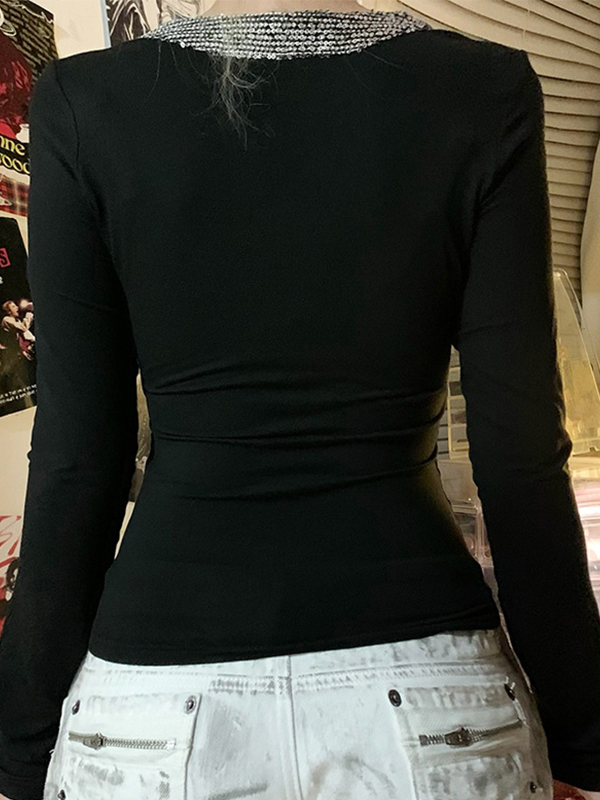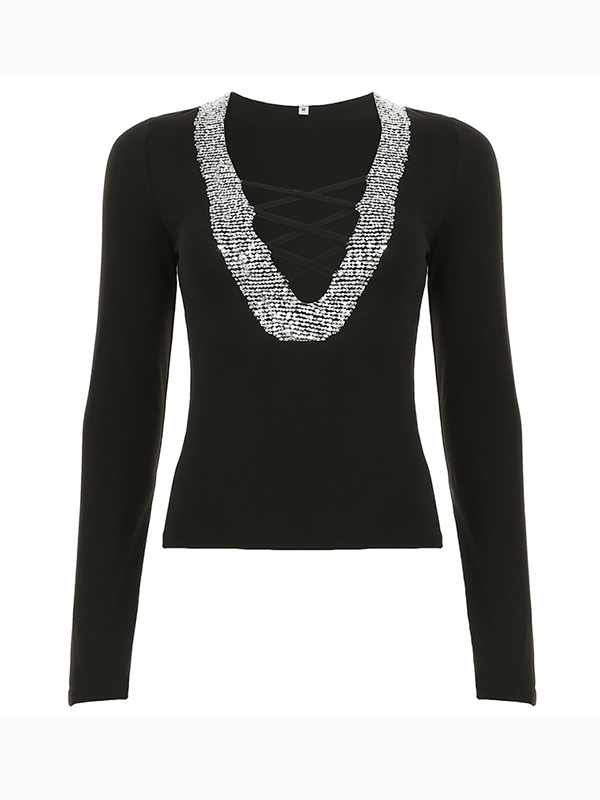 T-Shirt mit V-Ausschnitt und langen Ärmeln