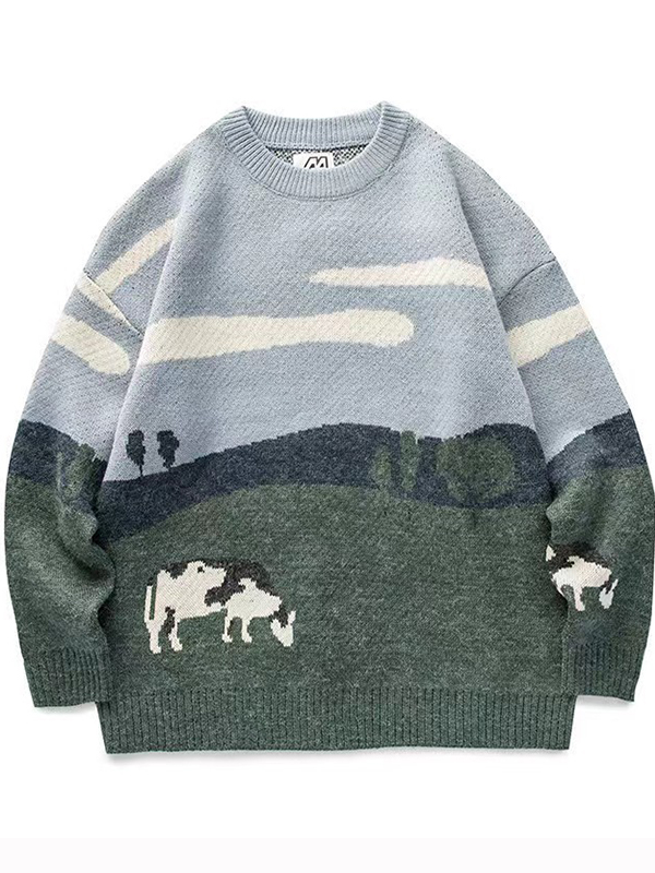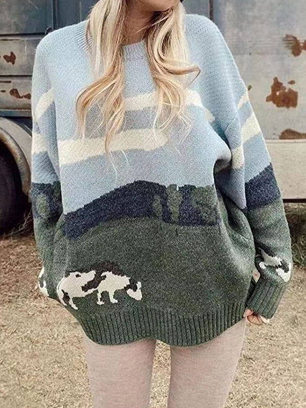Übergroße Pullover mit Kuh-Print