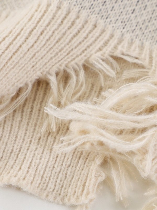 Beschreibung: Dieser schicke Streetwear-Pullover aus Baumwollstrickstoff zeichnet sich durch eine dunkle Grunge-Ästhetik aus, hat eine entspannte Silhouette, ein ausgefranstes Rippendesign, tief angesetzte lange Ärmel und geflügelte Kreuzmuster-Jacquard-Details.