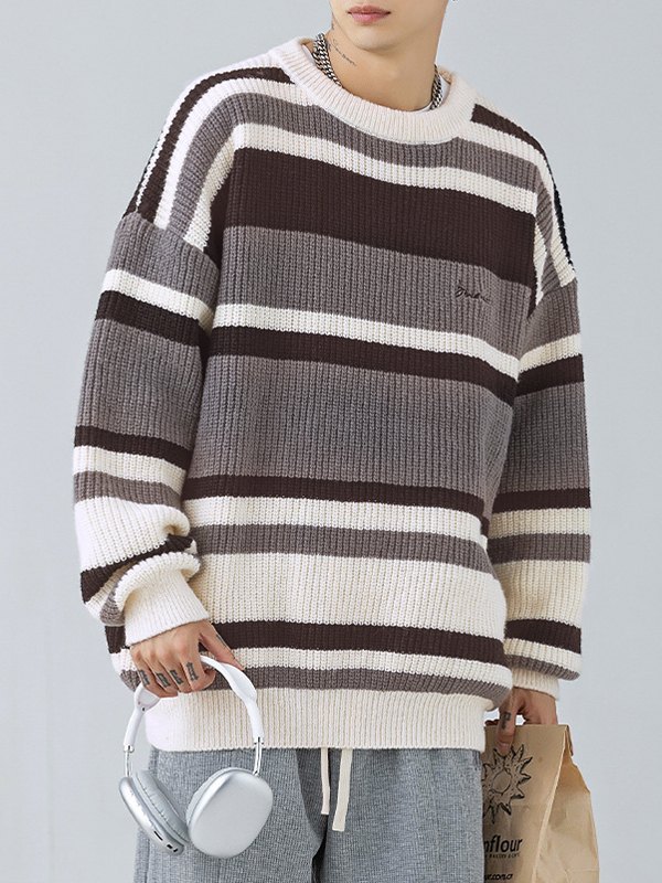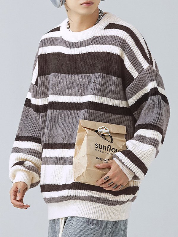 Kontrastgestreifter Vintage-Pullover für Herren